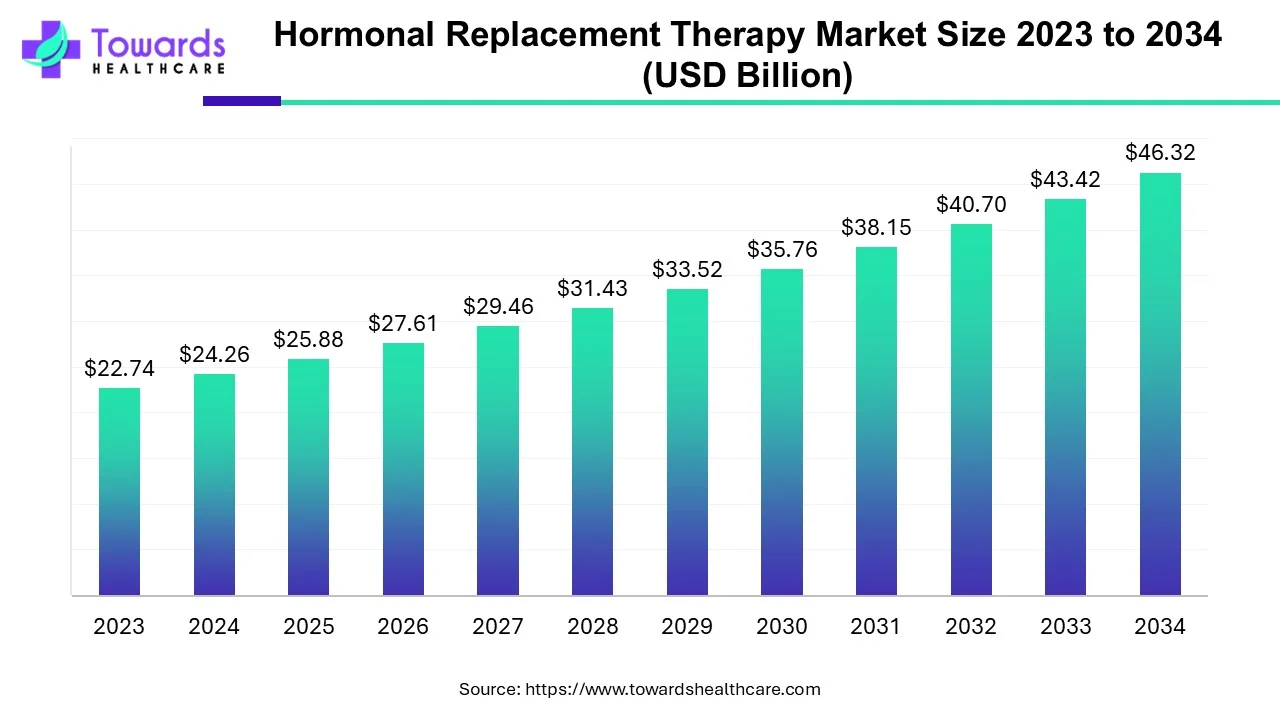 Hormone Replacement Therapy Market Poised to Reach USD 46.32 Billion by 2034, Growing at 6.68% CAGR: Towards Healthcare Report